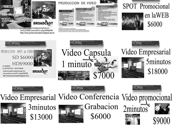 Hola somos PRODUCCION AUDIO VISUAL Tenemos un equipo de publicistas, diseñadores y animadores gráficos y nos dedicamos a promover y darle imagen a todo tipo de empresas. Sabiendo que los medios electrónicos han sido desde siempre el medio más efectivo para anunciarse queremos ofrecerles todo lo referente a: